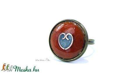 Szíves narancs-türkiz tűzzománc gyűrű