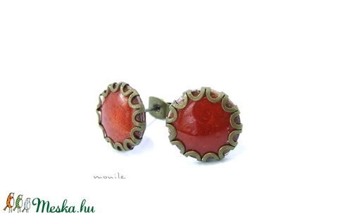Narancs tűzzománc bedugós fülbevaló hullámos széllel
