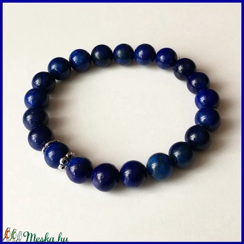 Lápisz lazuli ásványi karkötő, gömb alakú magas minőségű természetes féldrágakövekből.