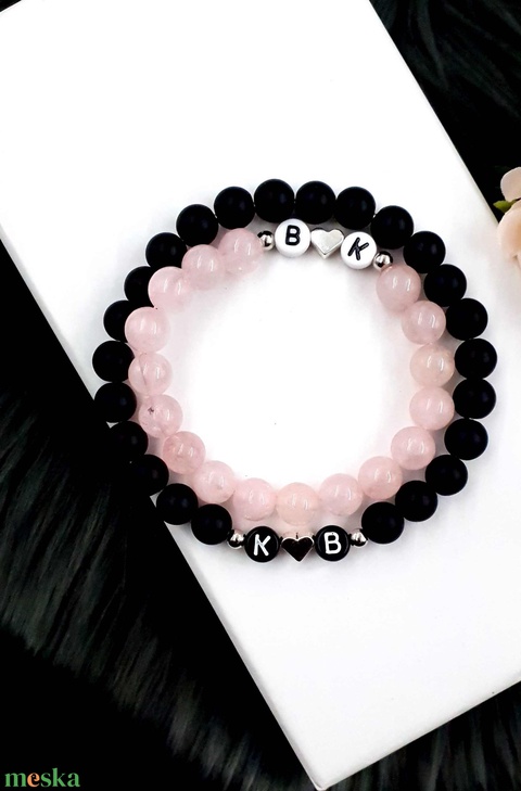 Közös szerelmi páros karkötő ásványgyöngyökből betűvel