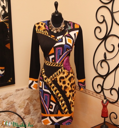 Vigyél színt a szürke hétköznapokba... Különleges mintájú alkalmi ruha. Optikai alakformálás felső fokon... Dekoratív, különleges egzotikus minta megfűszerezve egy kis luxus láncmintával, szépen dekoltált, térdig fölött érő, csinos, nőies ruha. Hossza kb. 96-98 cm, de ez egyedileg kérhető! Ez a modell egyedi méretek alapján rendelhető, ennek lehetőségéről kérlek belső üzenetben érdeklődj! Anyaga: viszkóz elasztán rugalmas és kellemes viselet. Köszönöm, hogy benéztél hozzám!!! Kérlek olvasd el a profil oldalamat is...