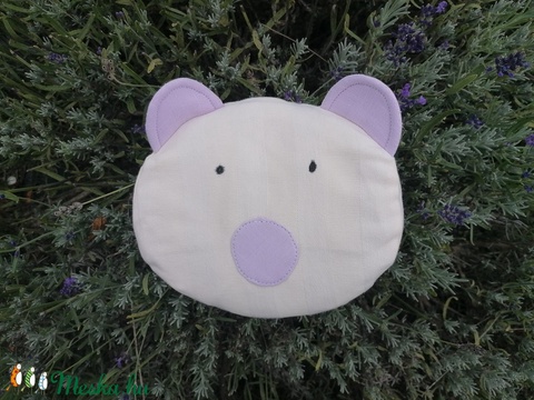 100% levendulával töltött 20 x 20 cm alvás segítő relax párna, kedves macis formában. Anyaga újrahasznosított farmer és pamut. A huzat puha fajta farmer. Színe középkék farmer.