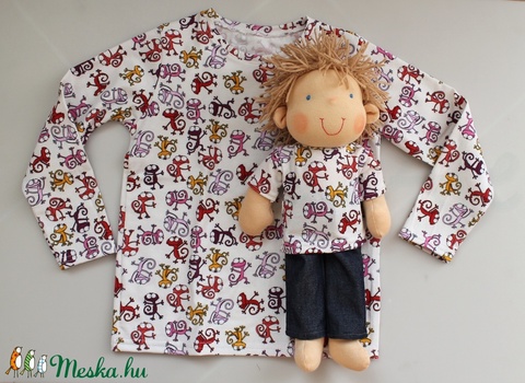 Waldorf fiú baba és azonos anyagból készült kisfiú póló- gyíkos