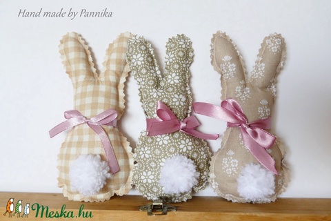 Három, húsvéti textil nyuszi, pom-pom farokkal (drappok)