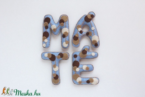 -50% AKCIÓ - MÁTÉ - betűk, bababetűk, név, felirat, filcből, világoskék, barna, beige, bézs
