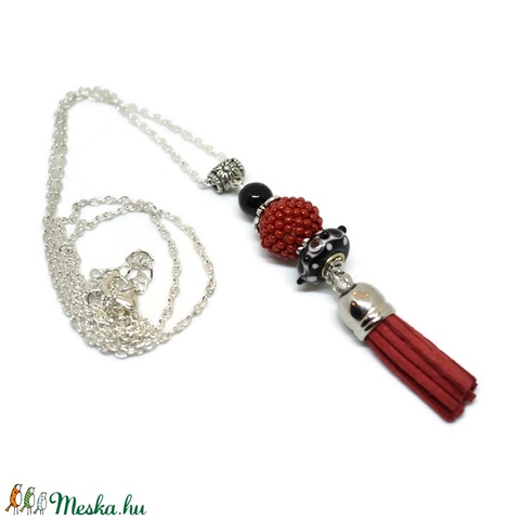 Piros fekete bojtos nyaklánc pandora gyönggyel