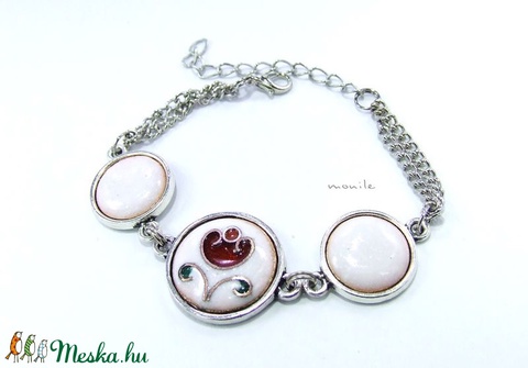 Virágos fehér-piros tűzzománc karkötő