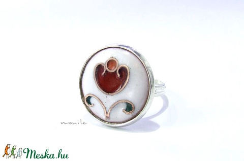 Virágos fehér-piros tűzzománc gyűrű