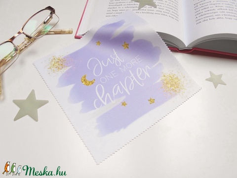 Csak még egy fejezetet - feliratos, mintás vastag anyagú mikroszálas törlőkendő szemüvegre, mobiltelefonra, tabletre