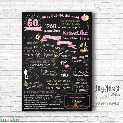 Szülinapi poszter felnőttnek krétatábla stílusban - nyomtatható, digitális fájlformátumban, nem fizikai termék