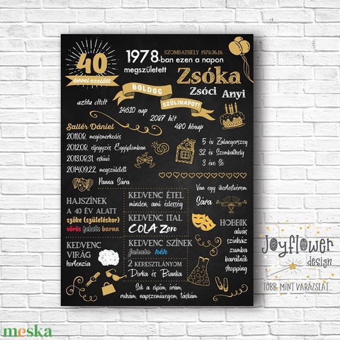 Szülinapi poszter felnőttnek krétatábla stílusban - nyomtatható, digitális fájlformátumban, nem fizikai termék