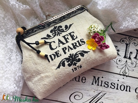 CAFE DE PARIS romantikus - kendervászon fémkeretes tárca.