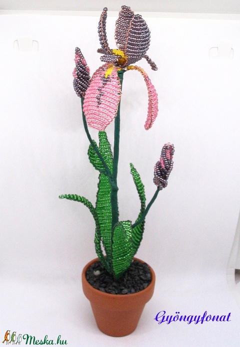 Nőszirom (írisz) gyöngyből, cserépben