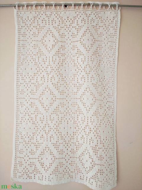 Rusztikus vonzalom duplán-Horgolt fehér régi magyar mintával készült függöny