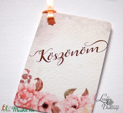 Igényes köszönetkártya, ajándékkísérő lyukasztva szalaggal kötve