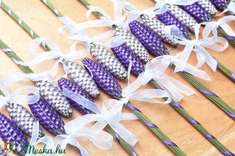 LEVENDULA BUZOGÁNYOK, világos és sötét lila szalaggal