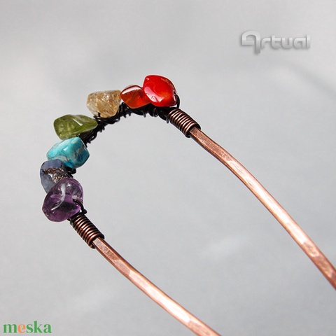 Kézműves réz hajtű színes ásványokkal