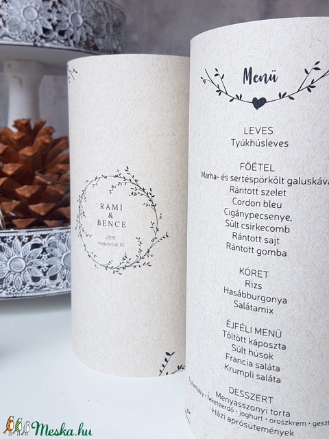 Esküvői menükártya • henger