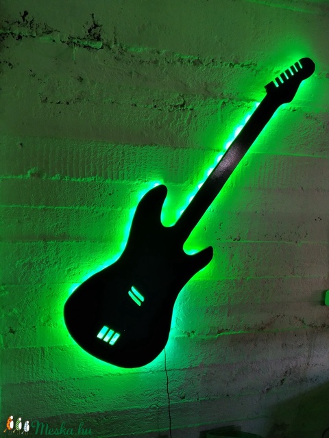 gitár, fali dekor, LED-es háttérfénnyel