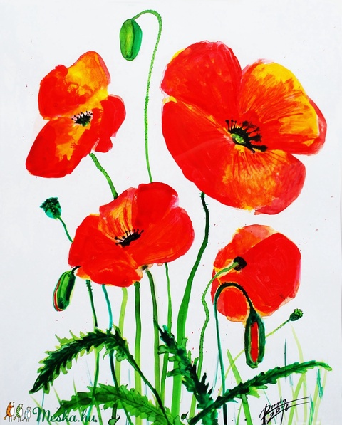 Pipacs, pipacsos akvarell, pipacsos festmény