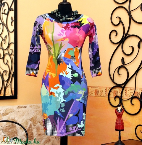 Színes art pöttyös ruha