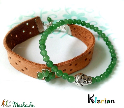 Jade Buddha ásványgyöngy és natúr bőr karkötő