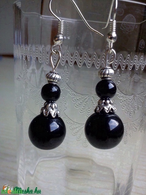 Fülbeval fekete gyönggyel és tibeti ezüst köztesekkel