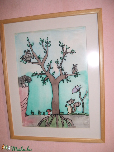 Hernyóselyem festmény. Veszélyben az állatok az erdőben cimmel.