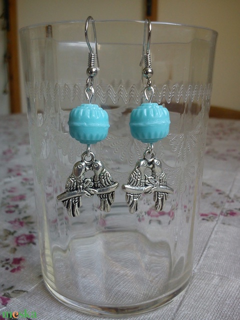 - Anyaga: tibetiezüst papagáj, gyöngy, ékszerszerelék, fülbevaló-akasztó
