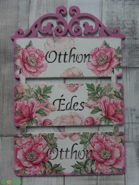 Pünkösdi rózsa,vintage rózsa,levendula vagy pipacs mintás Otthon Édes Otthon feliratú ajtódísz,üdvözlőtábla