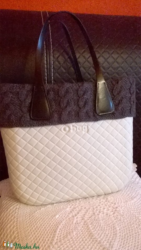 Kézzel kötött sötétszürke gallér Obag mini táskára