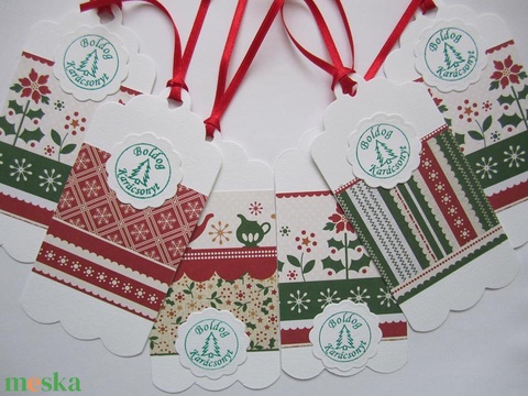 Boldog karácsonyt! - piros-zöld ajándékkísérő - karácsonyra, téli családi ünnepek ajándékaihoz