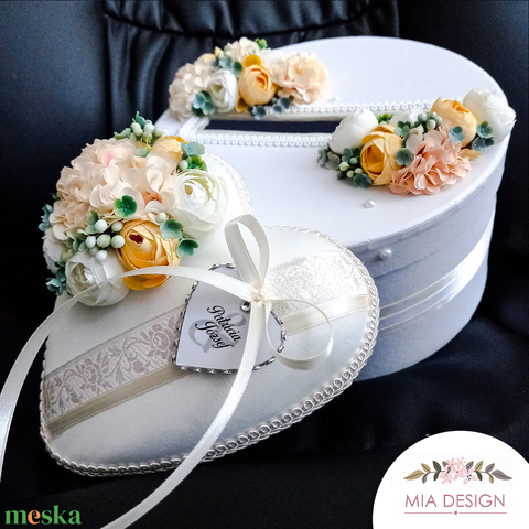 Ekrü alapú gyűrűpárna + pénzgyűjtő box szett
