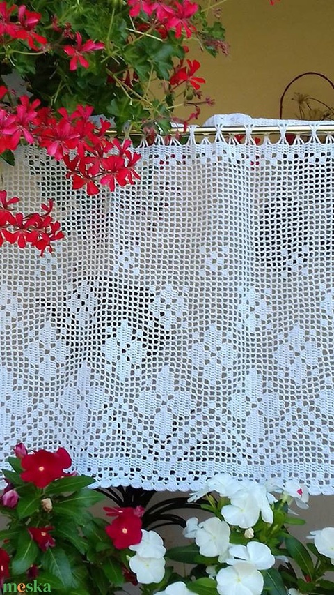 Provance 2.-Horgolt vitrázs,fehér csipke függöny apró hullámokkal