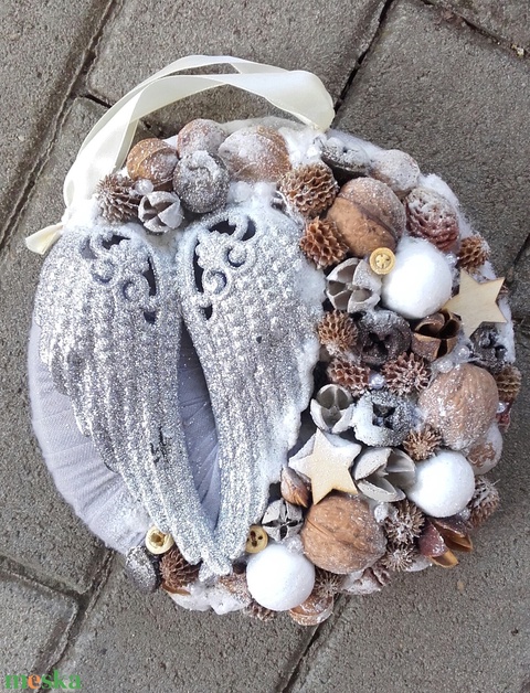 ANGYALSZÁRNY ünnepi-karácsonyi-adventi kopogtató, ajtódísz, falidísz, koszorú RENDELHETŐ