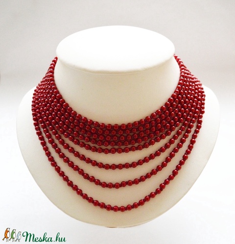 Meggyszínű, 8 soros kaláris tekla és üveggyöngyből