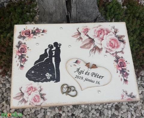 Fotótranszfer-feliratos, 6 rekeszes díszdoboz, esküvőre, kártyákkal. - RENDELHETŐ
