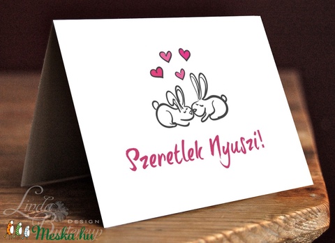 Valentin napi Képeslap, Szeretlek Képeslap, Valentin üdvözlőlap, Nyuszi, I love you, Szerelmes, Nyuszis képeslap