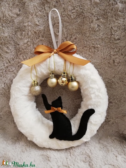 Cicás karácsonyi kopogtató, ajtódísz