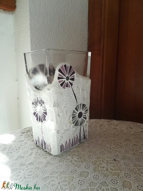 Virágos üvegmozaik váza