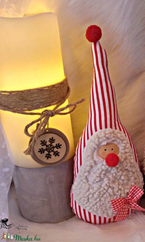 - Anyaga: pamutvászon, szilikonizált vatelingolyók, pompom, csengettyű, szalag