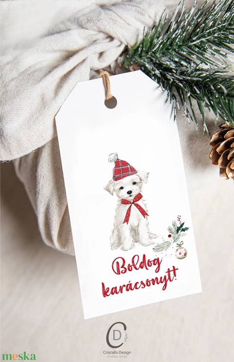 Karácsonyi ajándékkísérő kártya, kutyás ajándékátadó címke szett 5 db