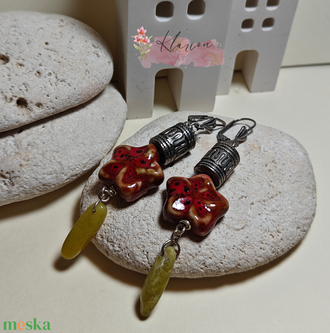- Anyag/Összetevő fülbevaló, gyöngy, ásvány, porcelán