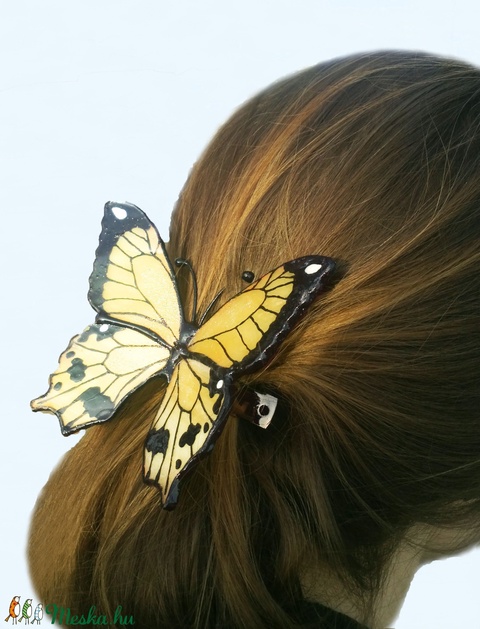 Francia hajcsat: Kézzel festett Fecskefarkú lepke, tiffanyból