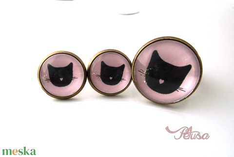 Macskás fülbevaló gyűrű szett cicás