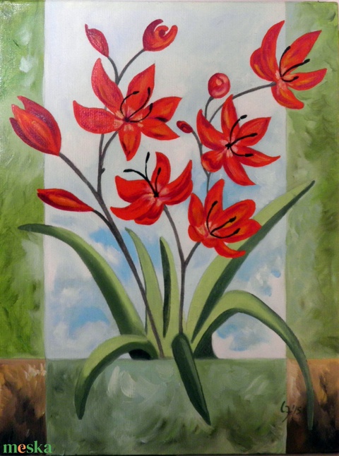 - Anyaga: kasírozott vászon lap, olajfesték, lakk