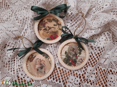 Cicás fenyődíszek- nosztalgia karácsonyi díszek, dekoráció,