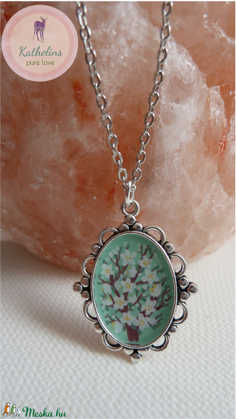 Tavaszi fehér virágos bokor mintás nyaklánc