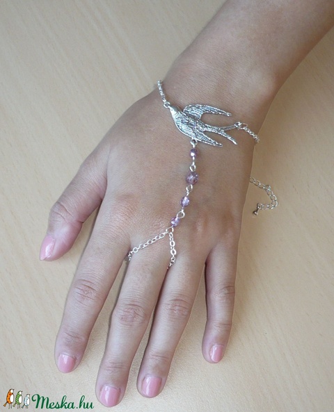 Galamb - rózsaszín, ezüst karkötő-gyűrű (kézfejkarkötő)