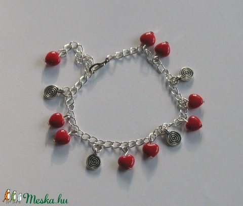- Anyaga: üveggyöngy, ezüst színű fityegő, lánc, kapocs, szerelőpálca, szerelőkarika